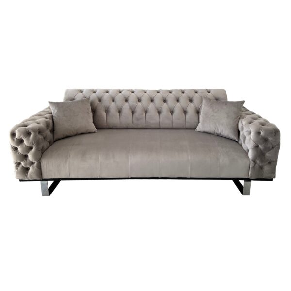 Aceasta canapea cu 3 locuri are 225 cm lungime, 100 cm latime si 85 cm inaltime, fiind un produs versatil. Structura este construita din lemn de fag si brad, placi aglomerate din lemn si MDF. Canapeaua Opulenta este o piesa ce aduce un plus de rafinament in orice camera, datorita aspectului atragator si al materialelor calitative ce o compun.