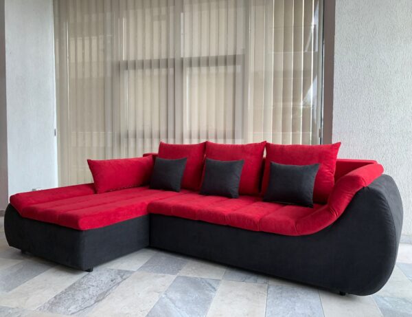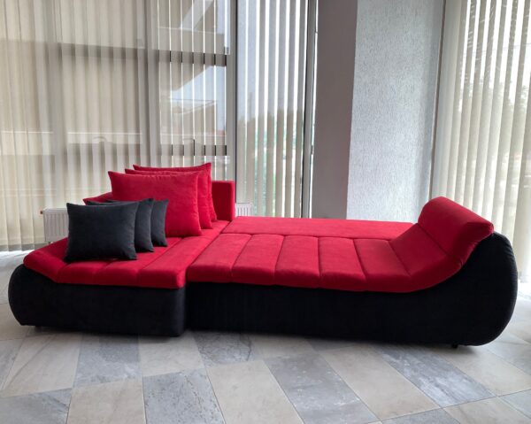 Coltarul Florence este realizat intr-un design modern, cu margini rotunjite si tapiterie din stofa in doua nuante contrastante si elegante: rosu + negru. Acest coltar extensibil pe dreapta are 280 cm lungime, 170 cm latime si 75 cm inaltime.